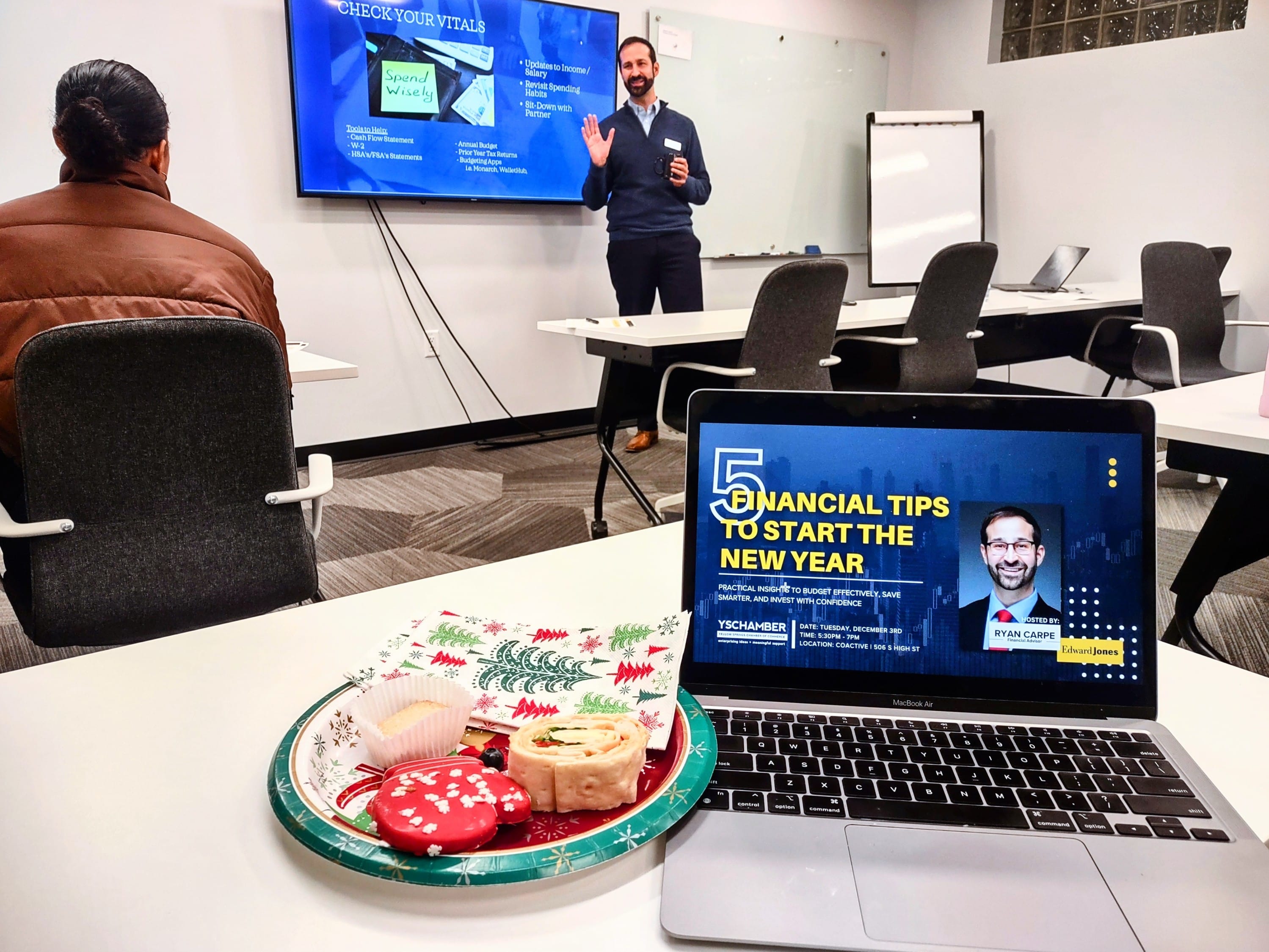 The Yellow Springs Chamber of Commerce (YS Chamber) continues its mission to promote economic development and enhance the prosperity of its member businesses and organizations by collaborating with Ryan Carpe, CFP, of Edward Jones. Together, they hosted a seminar titled “5 Financial Tips to Start the New Year,” which offered attendees valuable financial guidance while fostering a deeper understanding of the role of a financial planner and the importance of setting achievable goals.
